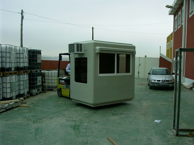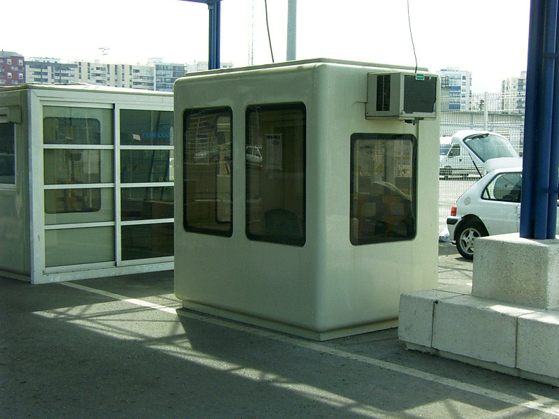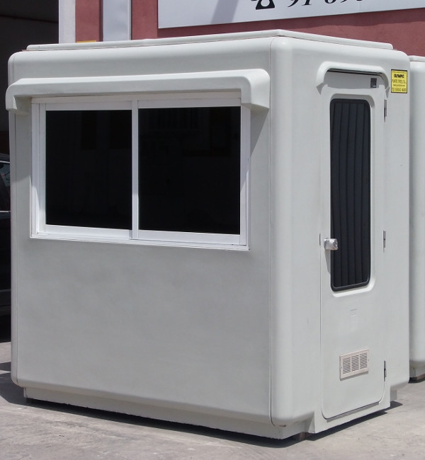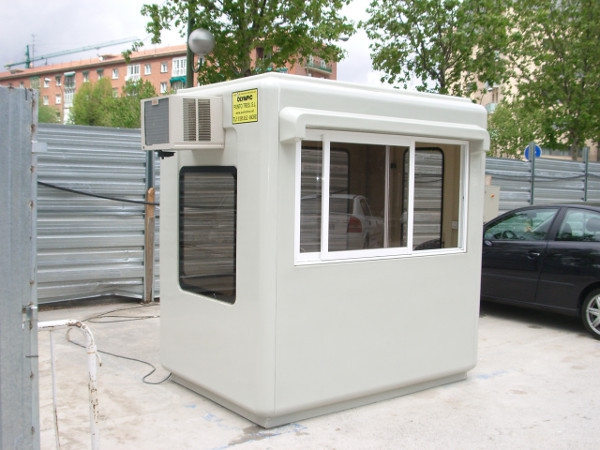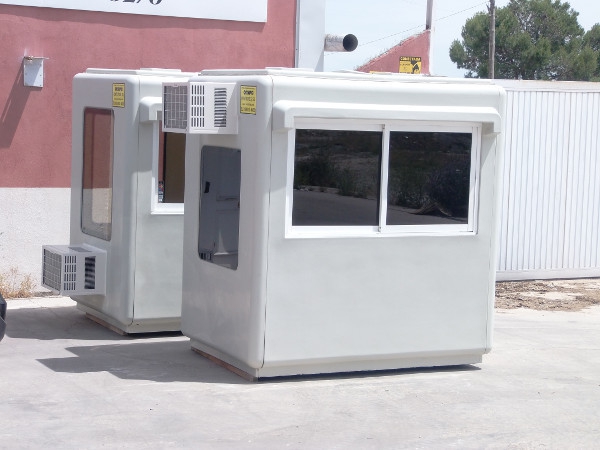 Disponemos de un parque de alquiler de cabinas de poliéster reforzado destinadas a control de entrada y vigilancia de ahí la modularidad y la gran visibilidad que tienen todas las unidades, así como su aspecto exterior que es muy distinto a las casetas de chapa metálica. Las medidas que tenemos disponibles son de 1,50 x 1,20m, de 1,50 x 2,20m y de 2,80 x 2,20m, todas ellas con aislamiento térmico, visibilidad por todos los lados, mesa de trabajo, instalación eléctrica y en los dos modelos mayores equipos de aire acondicionado modelo ventana con bomba de calor.